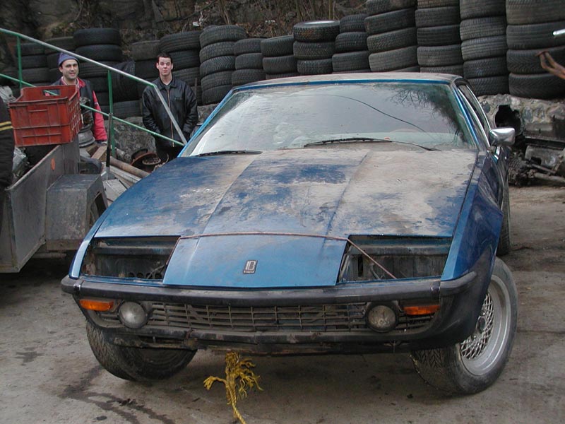 Opel bitter - nynejsi stav pred renovaci,mam jiz zrepasovany automat a ceka me motor a karoserie,motor byl plne funkcni a karoserie na castecnou korozi , pes mi okousal naraznik !! odporny zvire,doklady mam v depozitu,tak tam snad neshniji a jeste se svezu a modra 633, zatim nekompletni